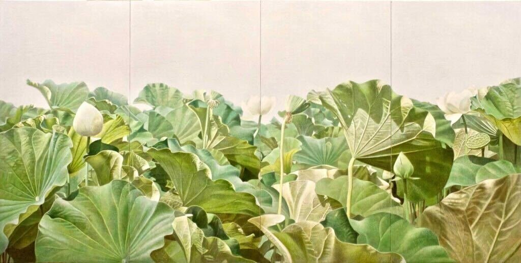 琵琶湖畔に広がる蓮がモチーフらしいです。あまりに水滴がリアルすぎて浮き出でみえ、思わず上の角度から見てしまいました。凄い技巧でした。