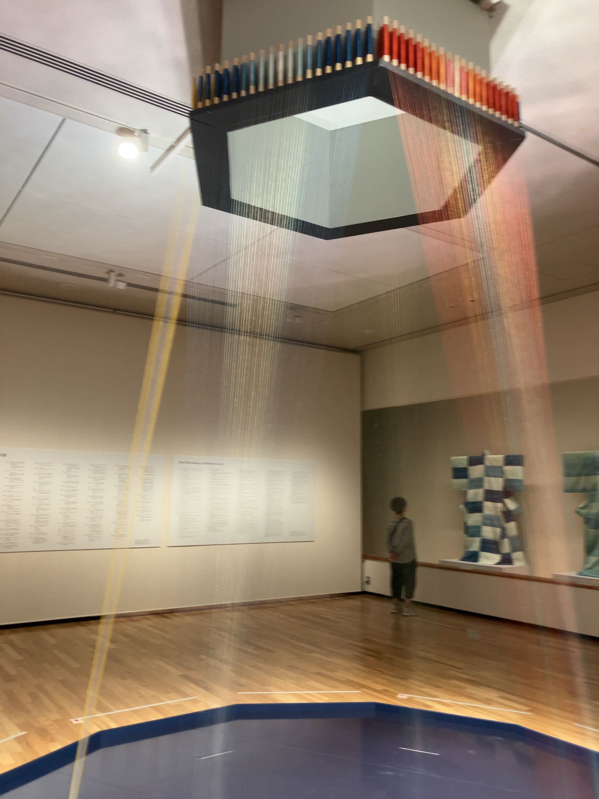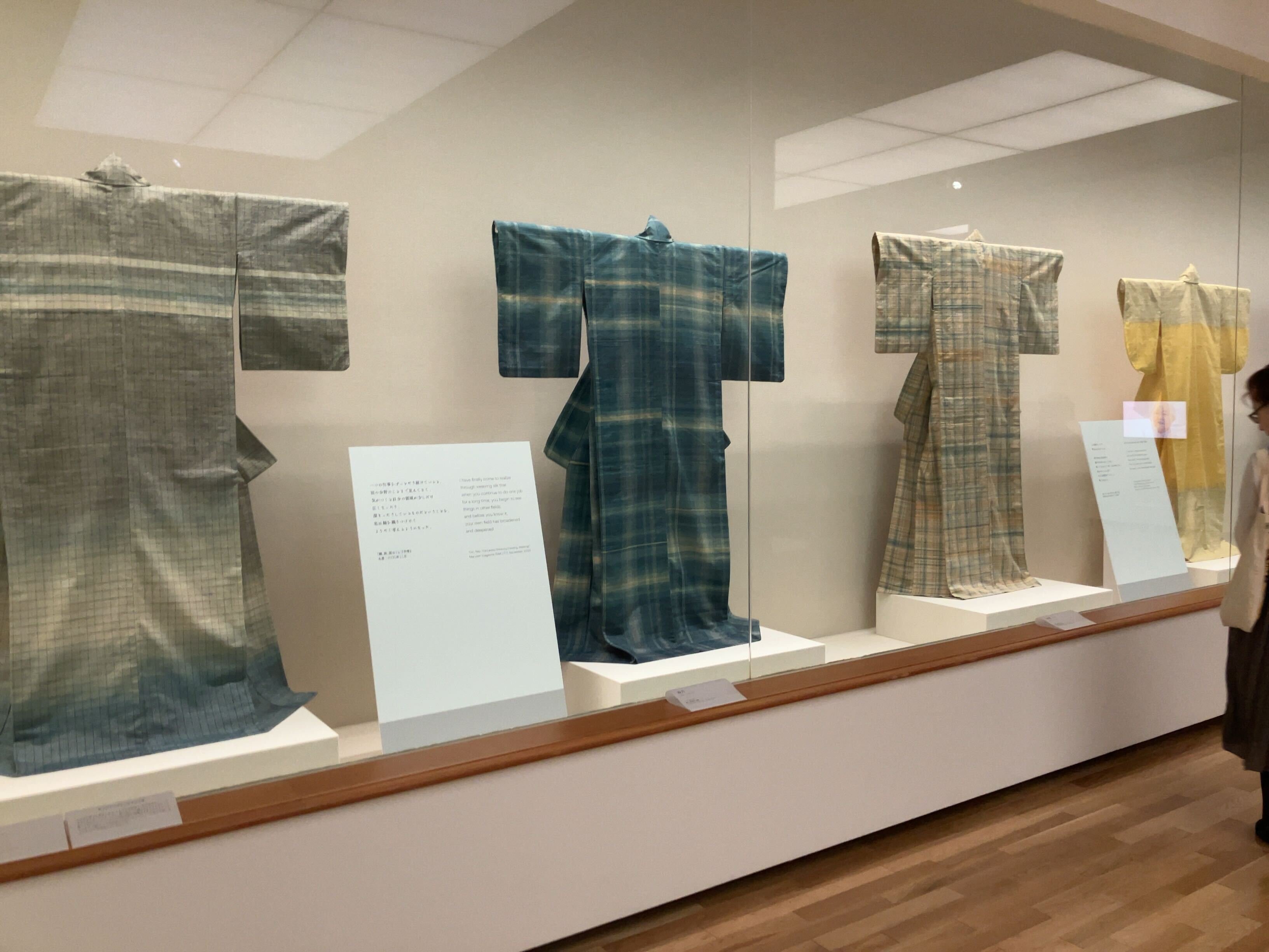 染織の展示です。照明も相まってか、上図よりも更にpltのviridis配色に見えてビックリしました。多分無関係なんでしょうが、偶然の一致ですね。