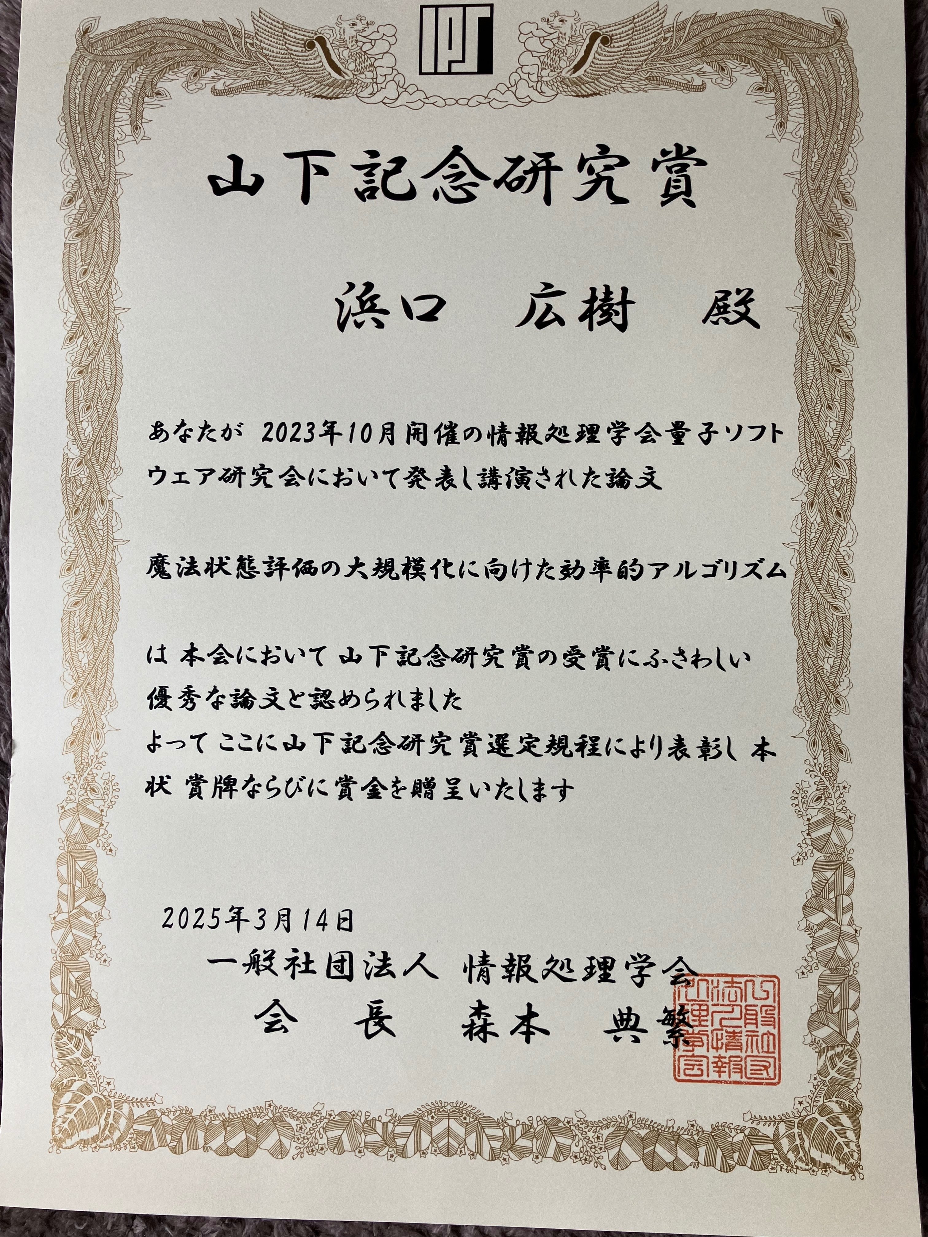 高々1人しか貰えないらしいので、私がこの賞を代表して頂いています。